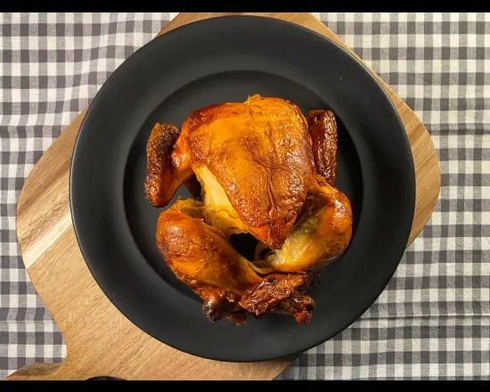La carne se baña con sus propios jugos y se sazona con hierbas y especies que logran que la consistencia sea más jugosa. El resultado es un pollo de piel dorada y crujiente por fuera y jugosa por dentro.