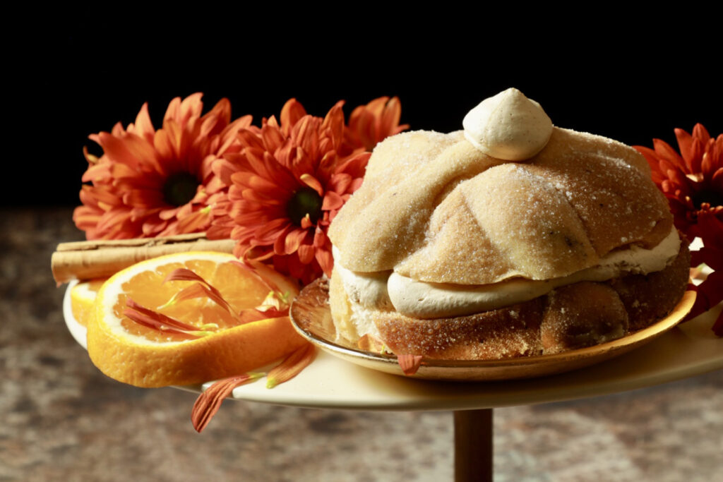 Ahora, imagina esta delicia en un pan de muerto tradicional: esponjoso, suave, con ese aroma a mantequilla y un relleno cremoso que huele a caramelo y canela. El resultado es un contraste perfecto entre lo clásico y lo contemporáneo, entre el sabor de nuestras tradiciones y un toque moderno que lo hace irresistible.