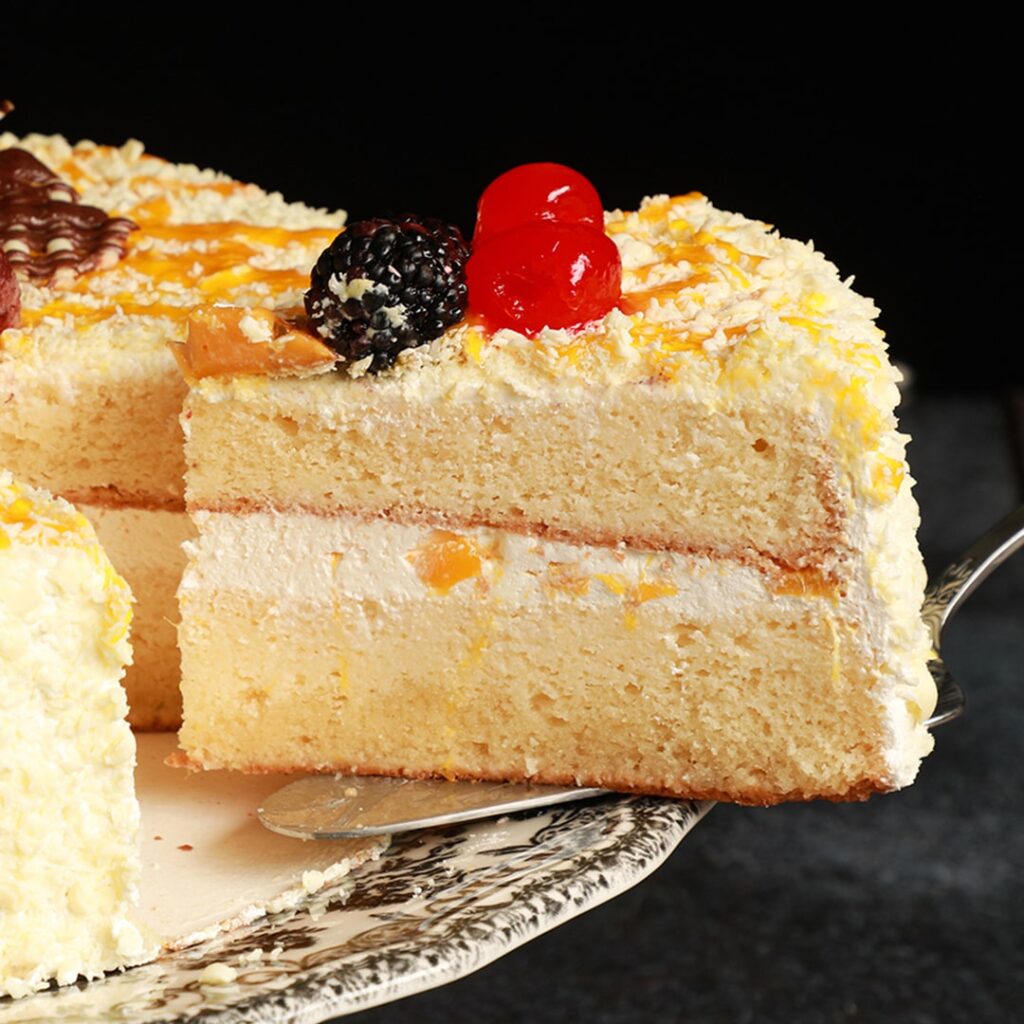 Es un pastel que entra por los ojos y confirma al primer bocado: jugoso, limpio en el corte y con un perfil tropical que no empalaga.